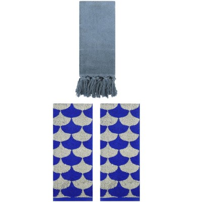 REGALWOVEN Cotton Absorbent Soft Decorative Turkish Bath Towel for Bathroom 3 Packs Blue 14" x 30"/13" x 29"