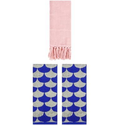 REGALWOVEN Cotton Absorbent Soft Decorative Turkish Bath Towel for Bathroom 3 Packs Pink/Blue 14" x 30"/13" x 29"