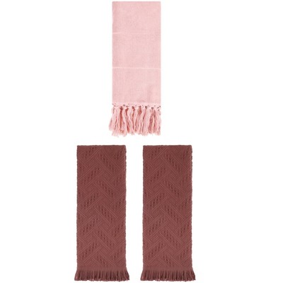 REGALWOVEN Cotton Absorbent Soft Decorative Turkish Bath Towel for Bathroom 3 Packs Pink/Brown 14" x 30"/13" x 29"