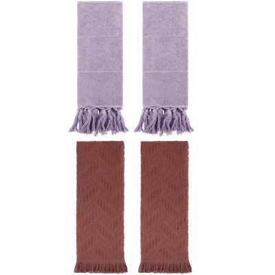 REGALWOVEN Cotton Absorbent Soft Decorative Turkish Bath Towel for Bathroom 3 Packs Purple/Brown 14" x 30"/13" x 29"