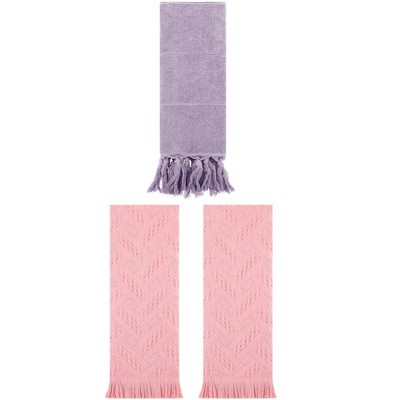 REGALWOVEN Cotton Absorbent Soft Decorative Turkish Bath Towel for Bathroom 3 Packs Purple/Pink 14" x 30"/13" x 29"