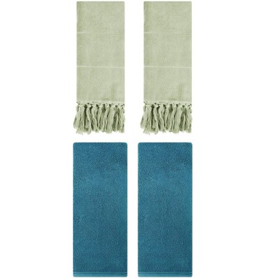 REGALWOVEN 4 Pcs Cotton Bathroom Hand Towel with Tassel Green/Pink 14" x 30"/13" x 30"