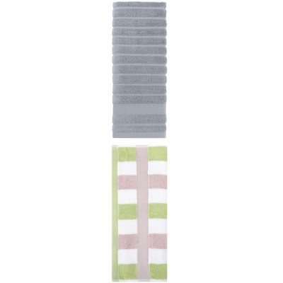 REGALWOVEN Cotton Hand Towels for Bathroom Hand Face Gym Spa 14" x 30"/13" x 29" 2 Pcs Grey/Green