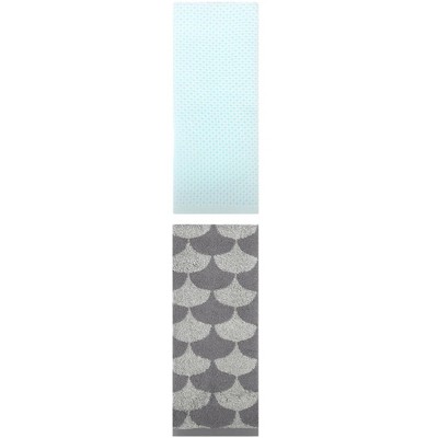 REGALWOVEN Cotton Soft Absorbent Bathroom Hand Towel for Kitchen Hotel and Spa 13" x 30"/13" x 29" 2 Pcs Light Cyan/Grey