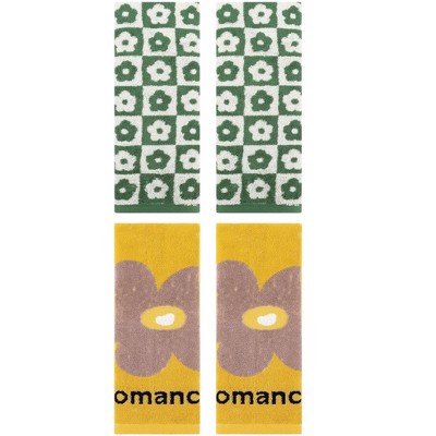 - 4 pcs hand towels, Embroidered Floral hand towels: 2pcs, 14" x 31", 100% cotton ; Checkered Floral hand towels: 2pcs, 14" x 30", 100% cotton