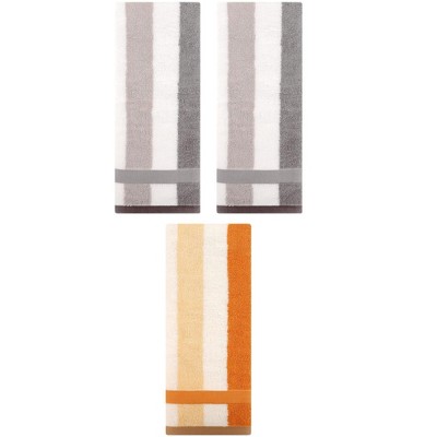 REGALWOVEN 2 Pack Cotton Soft Absorbent Striped Hand Towels for Bathroom 13" x 29" Grey/Brown Yellow