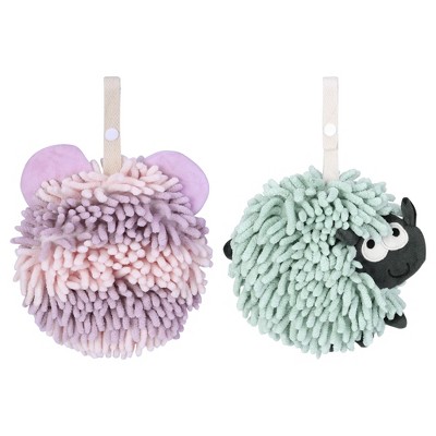 REGALWOVEN Cute Decorative Funny Sheep Shape Fast Drying Hanging Hand Towels 7" x 7" 2 Pcs