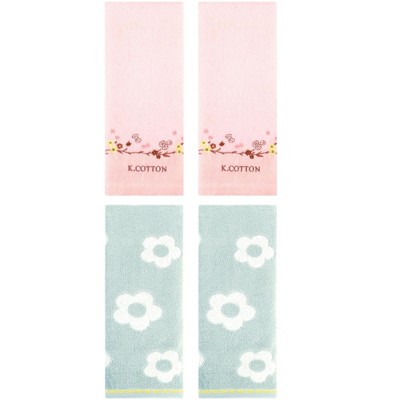 REGALWOVEN Cute Floral Pattern Cotton Bathroom Soft Absorbent Hand Towel 14 x 30 Inch Green/Pink 14" x 30"/13" x 29"