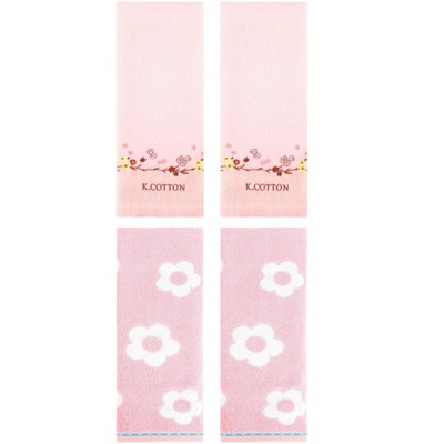 REGALWOVEN Cute Floral Pattern Cotton Bathroom Soft Absorbent Hand Towel 14 x 30 Inch Pink 14" x 30"/13" x 29"