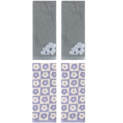 4 pcs hand towels, Cute Floral hand towels: 2pcs, 14" x 30", 100% cotton; Floral Pattern hand towels: 2pcs, 14" x 31", 100% cotton