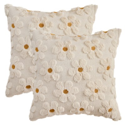 REGALWOVEN Daisy Flower Farmhouse Soft Modern Throw Pillow Covers for Sofa Holliday Home Decor 18 x 18 Inch 2 Pcs Beige