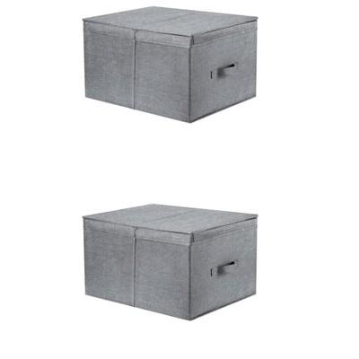 REGALWOVEN Fabric Collapsible Spacious Versatile Storage Bin with Lid and Handle 2 Pcs