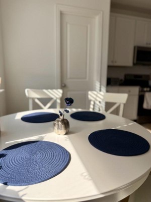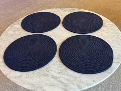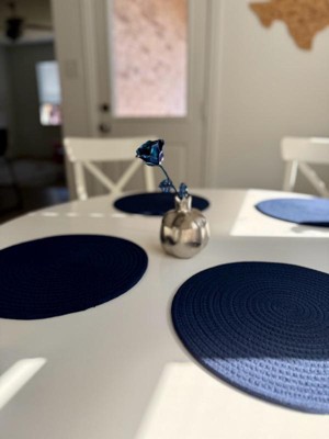 [This review was collected as part of a promotion.] These placemats instantly upgraded my kitchen vibe. The navy color is rich and elegant, and the cotton rope texture adds a cozy, farmhouse feel. They’re thick enough to protect the table, yet flexible for easy storage. No odd smell out of the package, and the size works well for standard plates. I’ve used them indoors and on the patio—easy to clean and still look brand new. Great craftsmanship and a solid value for a 4-piece set.
