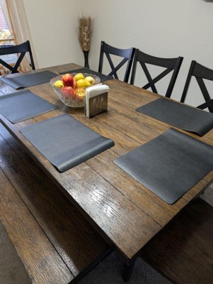 [This review was collected as part of a promotion.] I really wanted to like these placemats because the color in the photos looked beautiful, but the material was a disappointment. The faux leather feels hard and stiff, not soft or flexible like I expected. It also looks thicker and bulkier in person, which makes it harder to lay flat on the table. Honestly, the product doesn’t look as nice as the pictures—they seem much more elegant online. In reality, the texture and finish make them look a bit cheap. Not the look I was hoping for, so I wouldn’t buy them again.
