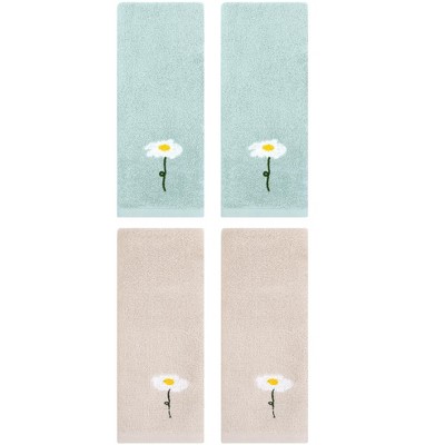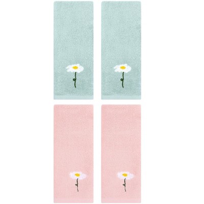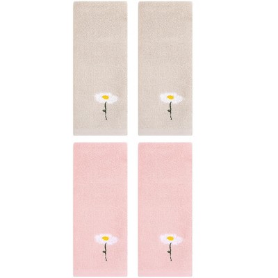REGALWOVEN Floral Pattern Soft Absorbent Cotton Bathroom Hand Towels 4 Pack
