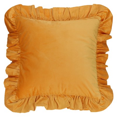 REGALWOVEN Geometry Velvet Couch Throw Pillow Covers with Pom-poms for Farmhouse Home Decor 1 Pc 18 x 18 Inch Yellow