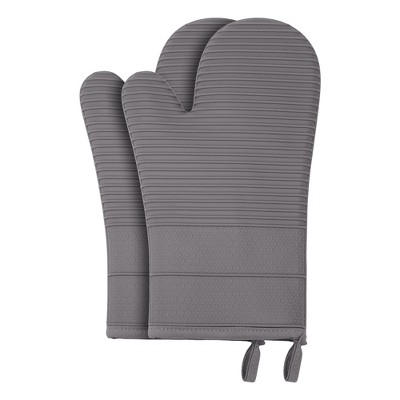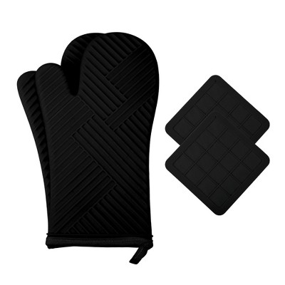 REGALWOVEN Oven Mitts and Pot Holders Sets of 6, Heat Resistant Kitchen Oven Gloves Sets with Non-Slip Silicone for Kitchen Black Vertical Stripes