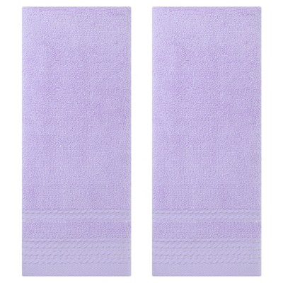 REGALWOVEN Pure Cotton Soft Absorbent Heart Love Pattern Bathroom Decorative Hand Towel 13 x 29 Inch Purple 2 Pcs