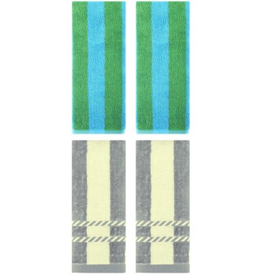 REGALWOVEN Pure Cotton Striped Decorative Hand Towel for Bathroom 14" x 30"/13" x 29" 2 Pcs Blue/Purple Pink