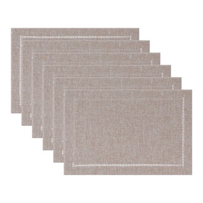 REGALWOVEN Round Placemats Set of 6 Woven Placemats for Home and Kitchen Indoor Table Mat Wipe Clean Beige