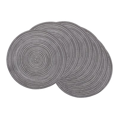 REGALWOVEN Round Rattan Indoor Outdoor Wipe Clean Rustic Placemats 15 x 15 Inch 6 Pcs Dark Gray