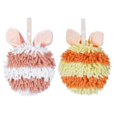 REGALWOVEN Soft Absorbent Chenille Decorative Hanging Ball Hand Towels 2 Pcs
