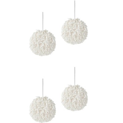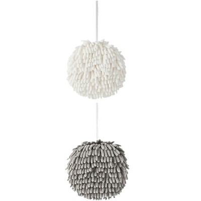 REGALWOVEN 2 Pack Soft Absorbent Chenille Fuzzy Ball Hand Towels for Bathroom Home Decor 6" x 6" White/Dark Pink