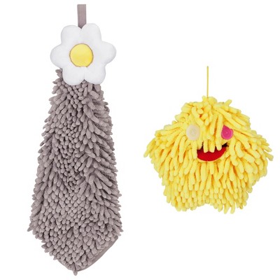 REGALWOVEN Soft Absorbent Flower Pattern and Sheep Pattern Chenille Hand Towel with Loop 6" x 15"/7" x 11" 2 Pcs