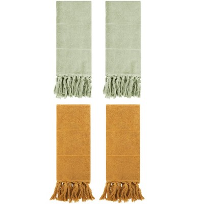 - Hand towels feature fringe tassels for a stylish look
