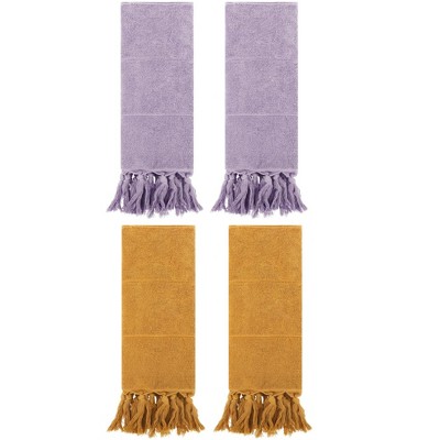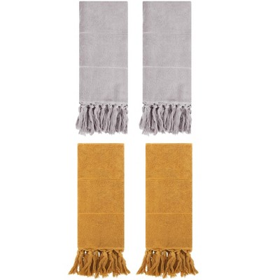REGALWOVEN Solid Cotton Bathroom Hand Towel with Tassel 4 Pack