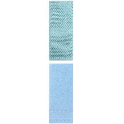 REGALWOVEN Solid Stripe Pattern Bathroom Face Hand Towels 14" x 30"/13" x 30" 2 Pcs