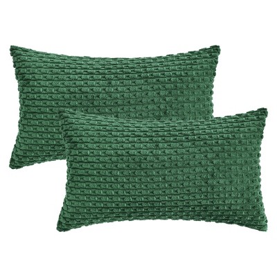 REGALWOVEN Striped Corduroy Decorative Throw Pillow Covers for Couch Bed Sofa Home Decor 2 Pcs 12 x 20 Inch Dark Green