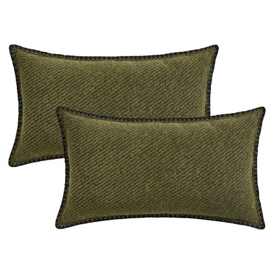 REGALWOVEN Striped Soft Decorative Throw Pillow Covers for Bed Sofa Living Room Farmhouse Home Decor 2 Pcs 12 x 20 Inch Green