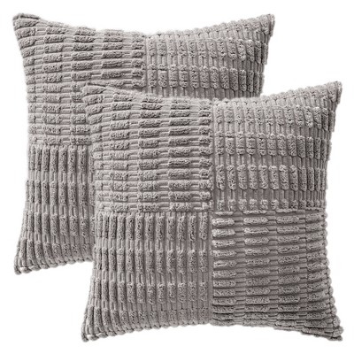 REGALWOVEN Velvet Throw Pillow Cover with Gold Striped Modern Pillowcase for Sofa Bedroom Living Room Home Decor 18 x 18 Inch 2 Pcs Grey