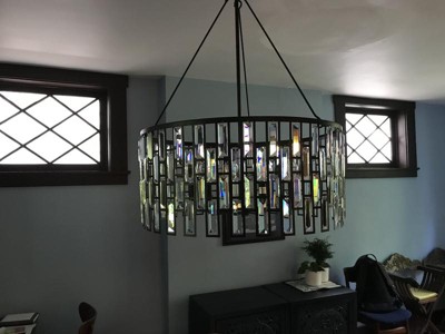 This fixture is really beautiful. The beveled glass refracts the light coming through it making it look like it’s many colors. We put LED bulbs in it and put in a dimmer switch and we’re in love with how it turned out.
