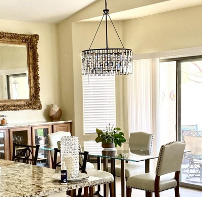 I love this chandelier- it’s elegantly casual!! Just beautiful in so many areas. One of the very best I’ve gotten at Lamps Plus...and, believe me I’ve gotten sooooo many!!