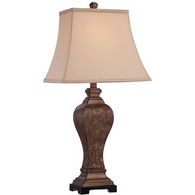 This transitional table lamp boasts a handsome urn-shaped body and warm bronze finish. The shapely base is distressed to achieve the look of a treasured antique. Topped with a taupe fabric rectangle shade. This lamp set comes with a tabletop dimmer, one for each lamp, which allows you to control the level of lighting. Simply insert the lamp plug into the dimmer outlet, and then slide the switch on the control to dim or brighten the lighting.