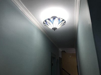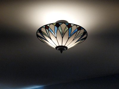 We absolutely LOVE this light, so much so that we just ordered a 2nd one. Be aware that some of the lightest pieces are almost transparent, so you can actually see the light bulbs through them. It arrived very quickly and was very well packed. We are using these in two different 1st floor hallways but it would also work for a bedroom. It's hard to find a Tiffany-style light that doesn't have a lot of dark amber & brown tones, this one actually allows you to enjoy the colors and LIGHT!
