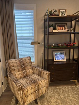 Love this lamp. It's next to a cozy reading chair in my bedroom and blends in well.