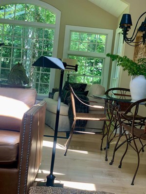 The lamp, which was reasonably priced, arrived quickly and was very easy to assemble. I like that it is adjustable in height and swivels. We needed another light for reading in our living room. Seems like a quality lamp!