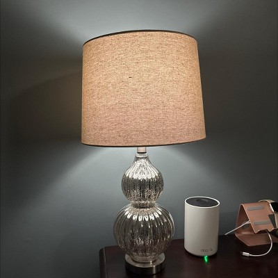 We bought this lamp to replace another mercury glass lamp that our rambunctious kitten knocked off the table. Unfortunately this one is even lighter weight and rather wobbly. Pretty lamp, but I don’t give it much chance of survival unless I can find a way to add weight to the base.