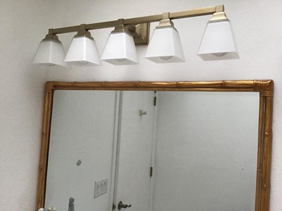 Perfect fit in my bathroom. Love the finish. Very soft and perfectly lighting for my bathroom. Soft finish on the lamps. Very modern