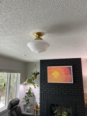 Regency Hill Modern Ceiling Light Semi Flush Mount Fixture 12 3/4" Wide Soft Gold White Glass Shade for Bedroom Kitchen Schoolhouse