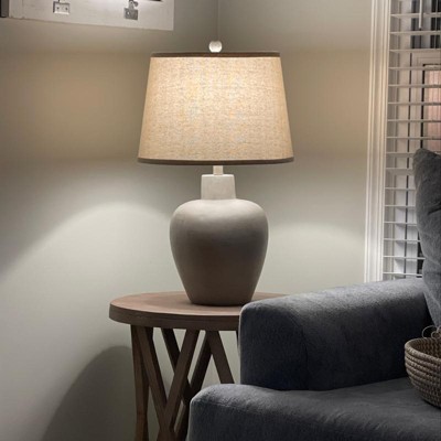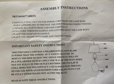 I’ve spent 3 months looking for lamps and found the perfect one online at Target.com Although these are not made/distributed by Target, the lamps are surprisingly well made and arrived just as expected! The lamps are easy to assemble, and made of light (even though they look ceramic) plastic. We used the hue light bulbs and they function perfectly. The instructions included also note alternate shade specifications should you decide to replace the shade it comes with!