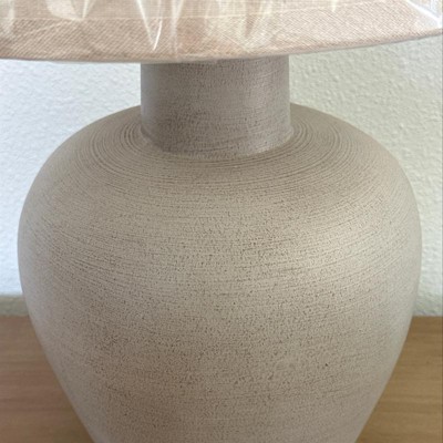 The description says the base is made from resin to look like ceramic. However, it does not. It looks like a big piece of plastic with ridges. The color variations are also very different. Photos appear varying shades of taupe, ivory, etc. but it just looks beige. And cheap.