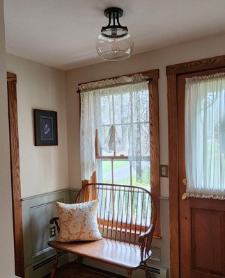 This lamp was perfect for a small area outside a bedroom. We had already purchased a number of Charleston fixtures but their smallest one was too big for this location. This one has a smaller globe and unless you look really close, you can’t notice the differences!