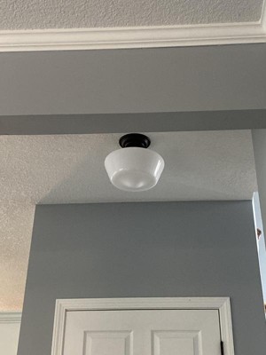 Regency Hill Schoolhouse Floating Modern Farmhouse Ceiling Light Semi Flush Mount Fixture 12" Wide Bronze White Glass Shade for Bedroom Living Room
