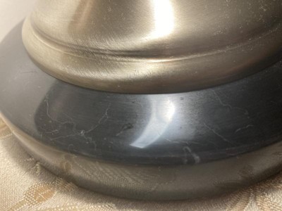 Lamp is beautiful. Marble base has a white line running through it. Looks like a crack, but its not. Wouldn't be a big deal, but it runs down the front of the base and is very noticeable. Recipient commented it was ok, but still it is noticeable.