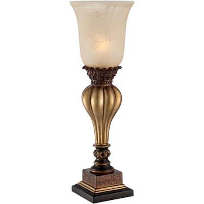 Regency Hill Traditional Uplight Accent Table Lamp 12" High Dark Bronze Amber Mosaic Glass Shade Bedroom House Bedside Nightstand
