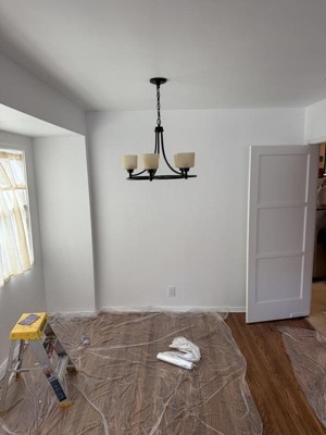 Hung this over a round glass table in a kitchen nook with a curved wall. Glass a bit yellow during the day, but look good at night. Added a dimmer switch.